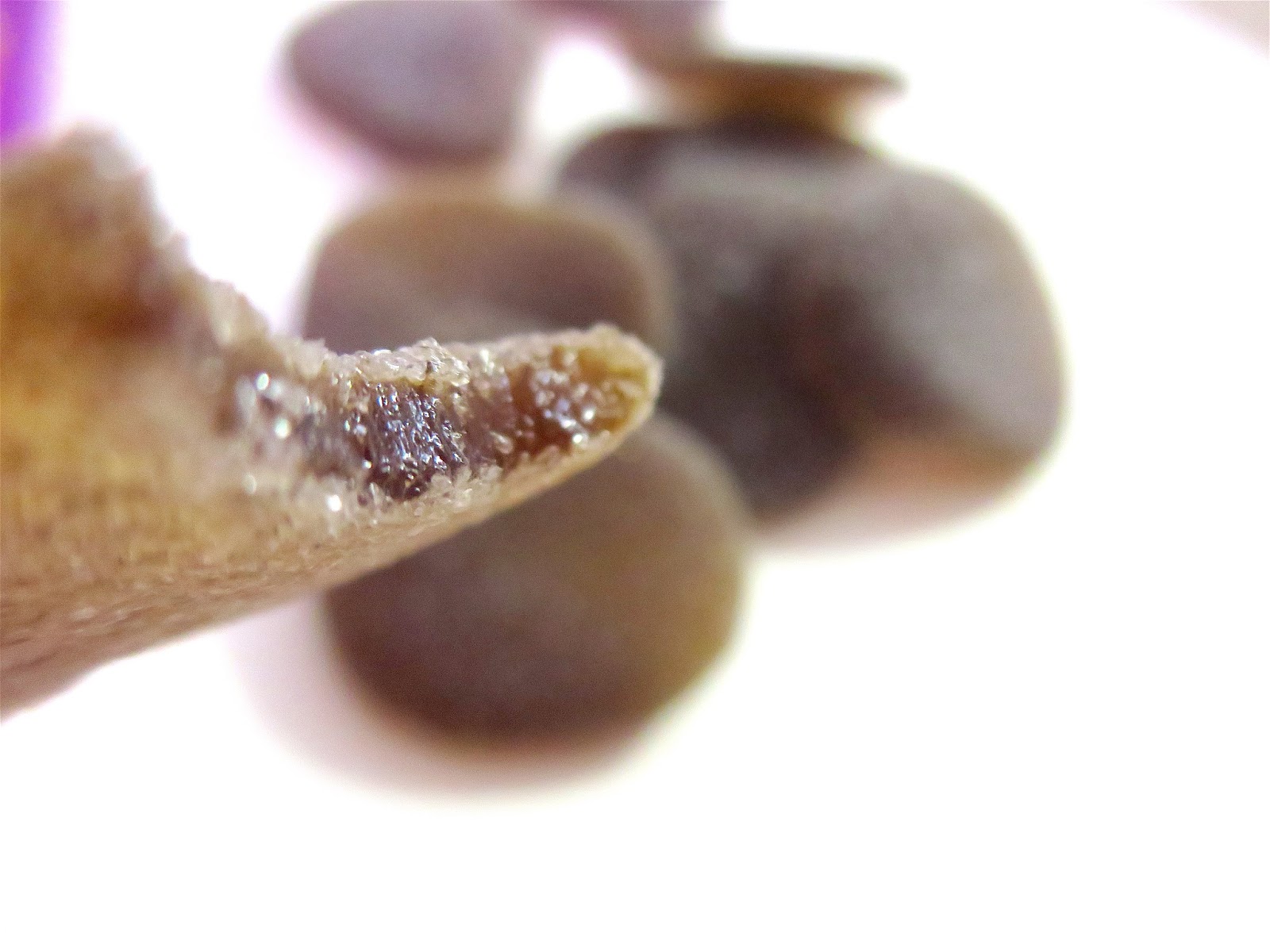 表面有粗糖粒,但不是像砂糖那樣粗,較為細膩一點,薄薄的一層